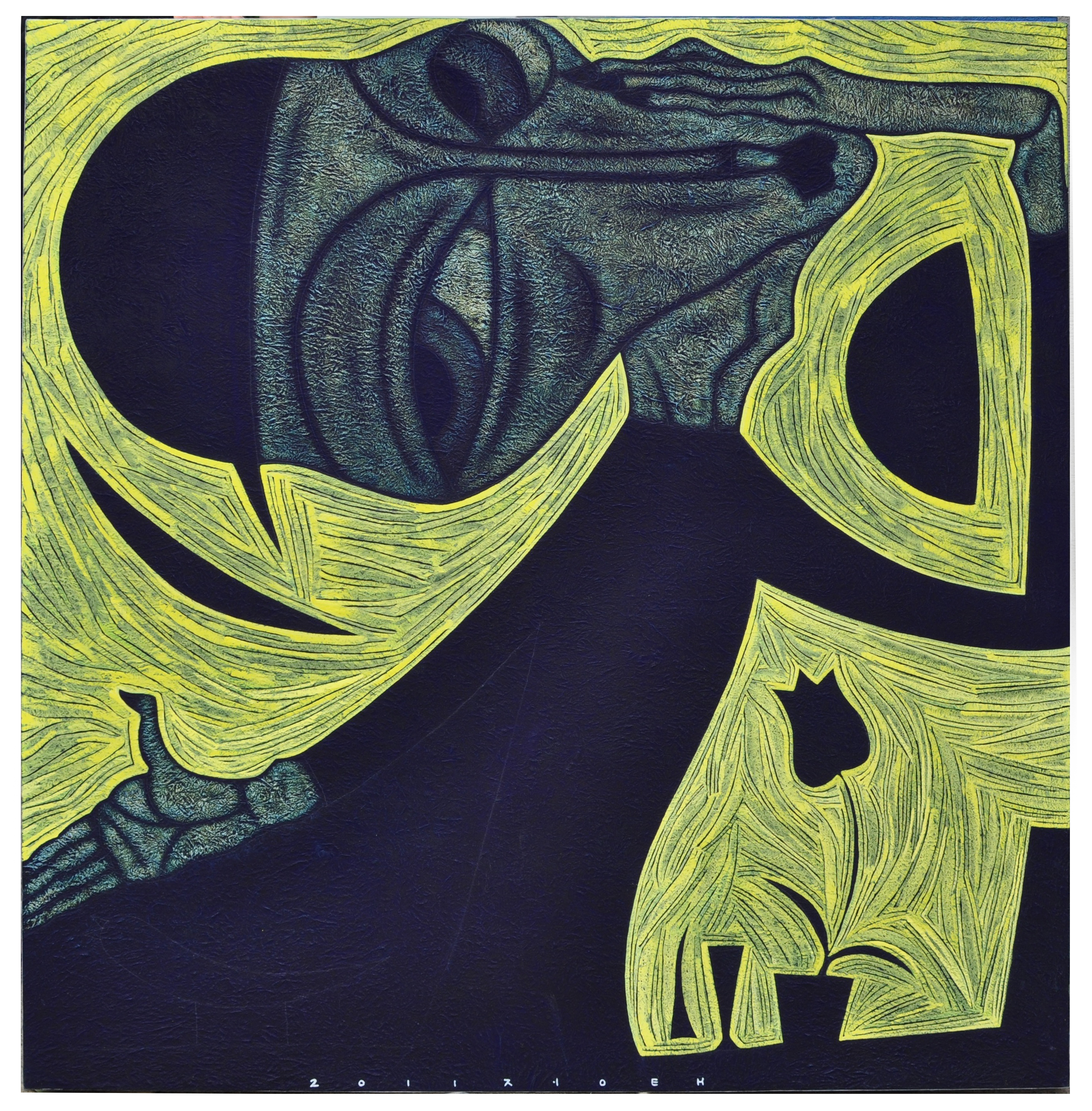 서정태 Suh Jung Tae, 푸른 초상 Blue Portrait ,korean paper oriental pigment 장지에 채색, 160×160cm